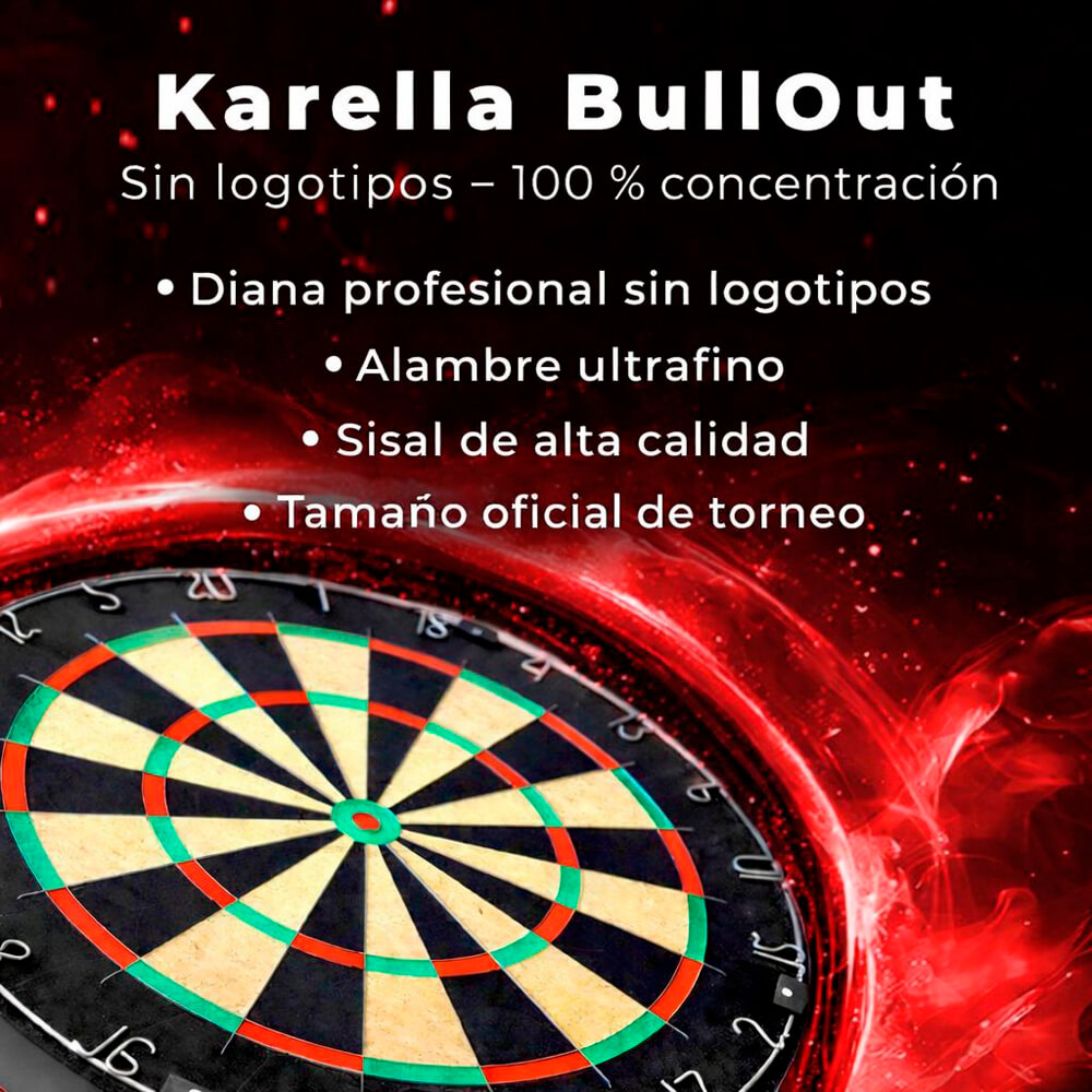 El producto se compone por 1 diana Karella BullOut , incluye solo el soporte de pared, no incluye dardos es solo la diana