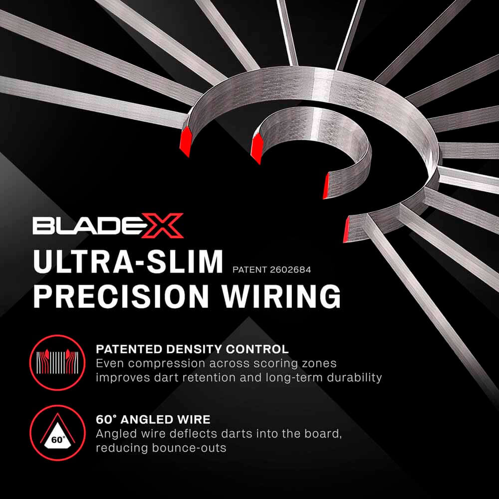 Un sistema de cableado ultra delgado inclinado que amplía la superficie de las zonas de puntuación, con un diseño de hilo inclinado a 60 grados que guía los dardos hacia las áreas clave de puntuación y reduce drásticamente los rebotes y rechazos.