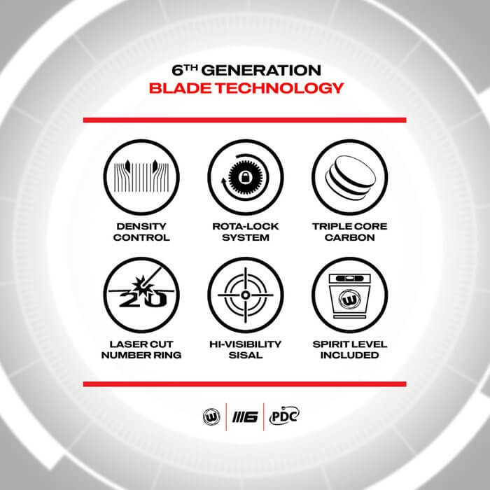 DESCRIPCIÓN:PACK DIANA WINMAU BLADE 6 TRIPLE CORE + SURROUND BLADE 6 TRIPLE CORE + 6 DARDOS DE TUNGSTENO + LINEA DE TIRO BLADE 6 TRIPLE CORE