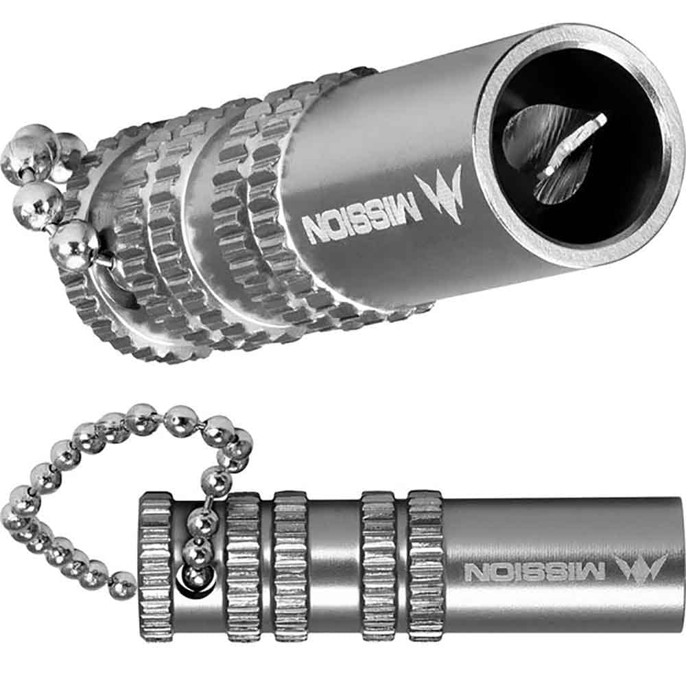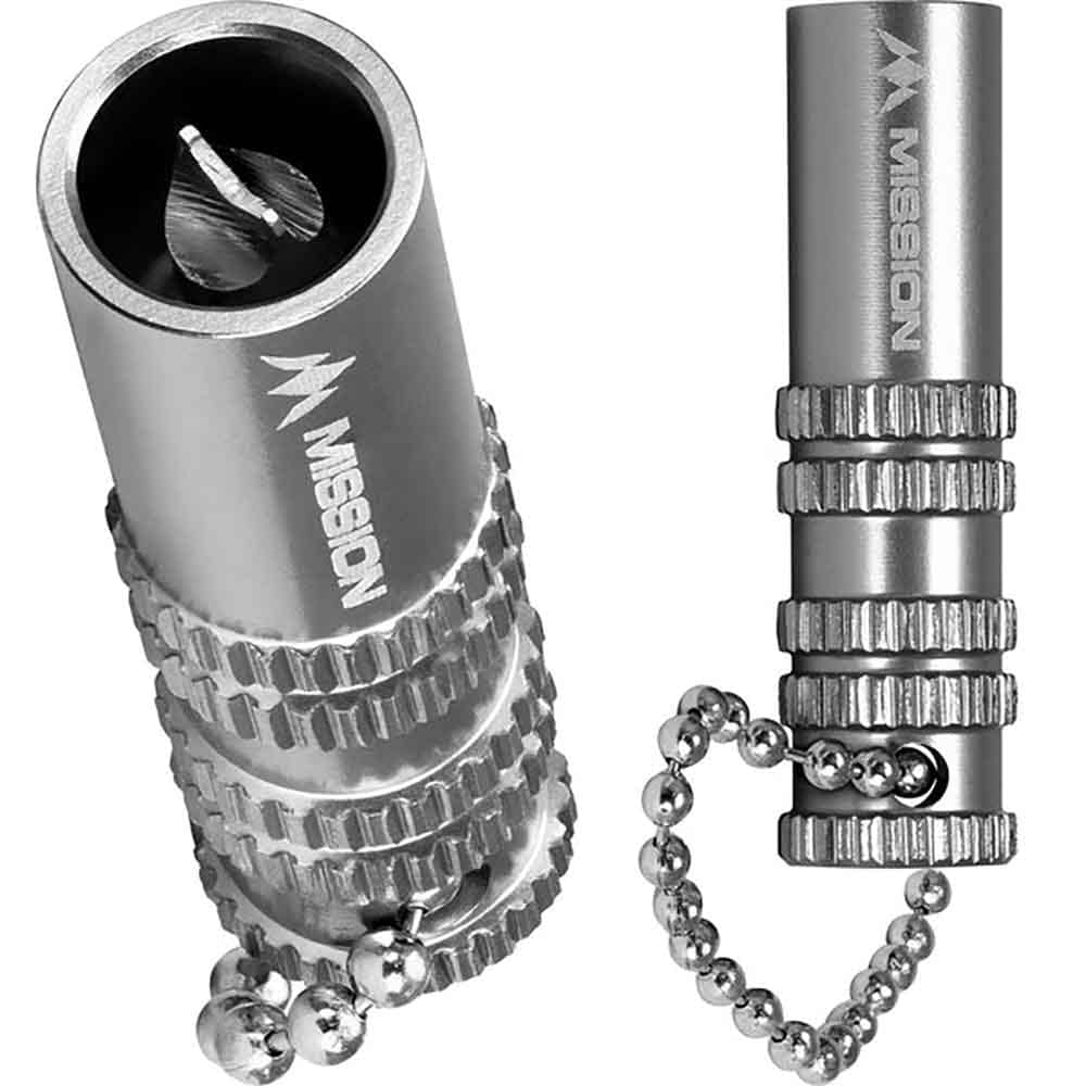Herramienta de extracción de cañas rotas de aluminio Mission. Elimina cañas rotas y puntas blandas con facilidad gracias a esta herramienta , incluye cadena para fijar fácilmente donde se necesite para que siempre esta a mano cuando se esta jugando a dardos.