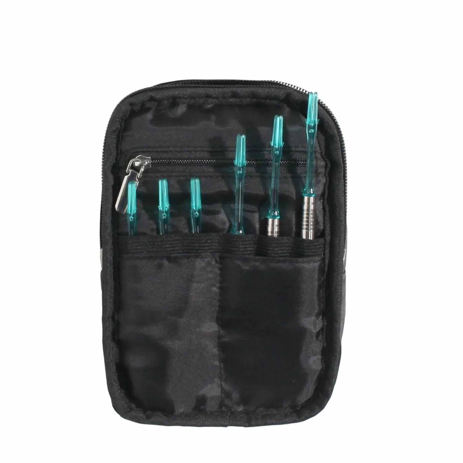 La lujosa funda para dardos de Cameo Include contiene dos fundas extraíbles de plástico duro que, una vez montadas, protegen de forma óptima los dardos contra las influencias externas. La alta calidad de su fabricación y los numerosos bolsillos para cañas, puntas y otros accesorios convierten a esta bolsa en el compañero ideal para los jugadores más exigentes.