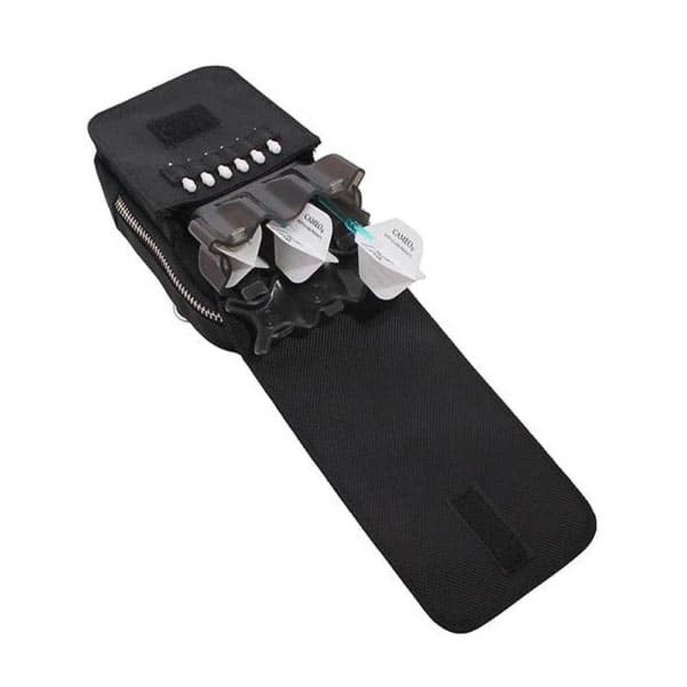 Esta fantástica dardera con capacidad para 2 juegos de dardos montados incluye 2 fundas de plástico ajustables para mayor protección de tus dardos y 2 anillas de metal para añadir accesorios externos que incluyan mosquetón, como porta puntas o fundas para plumas.