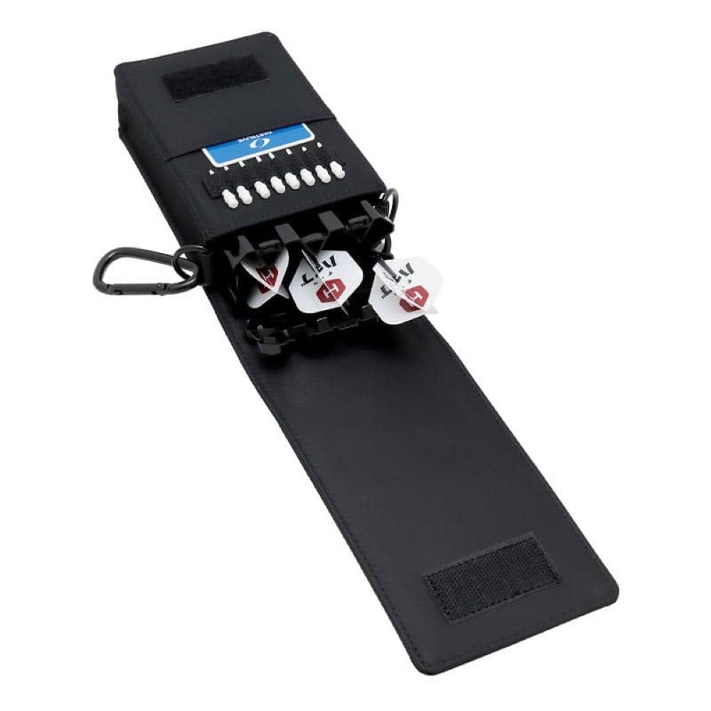 Con capacidad para 1 juego de dardos montados, 1 bolsillo para accesorios y 8 ranuras de tela bordadas para guardar tus cañas o puntas.