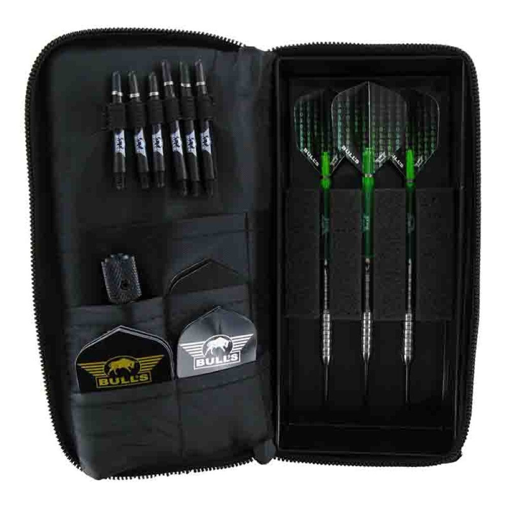 DESCRIPCIÓN:Funda de dardos muy similar a las The Pack ahora personalizada con el parche original Bulls, Interior de plástico reforzado para evitar posibles deterioros de tus Dardos, Esta Funda es para Guardar tus Dardos Montados con las Plumas y todo!!, Basta ya de Ponerlas y Quitarlas cada vez que las Guardas, Ahorra En Plumas con esta Dardera.