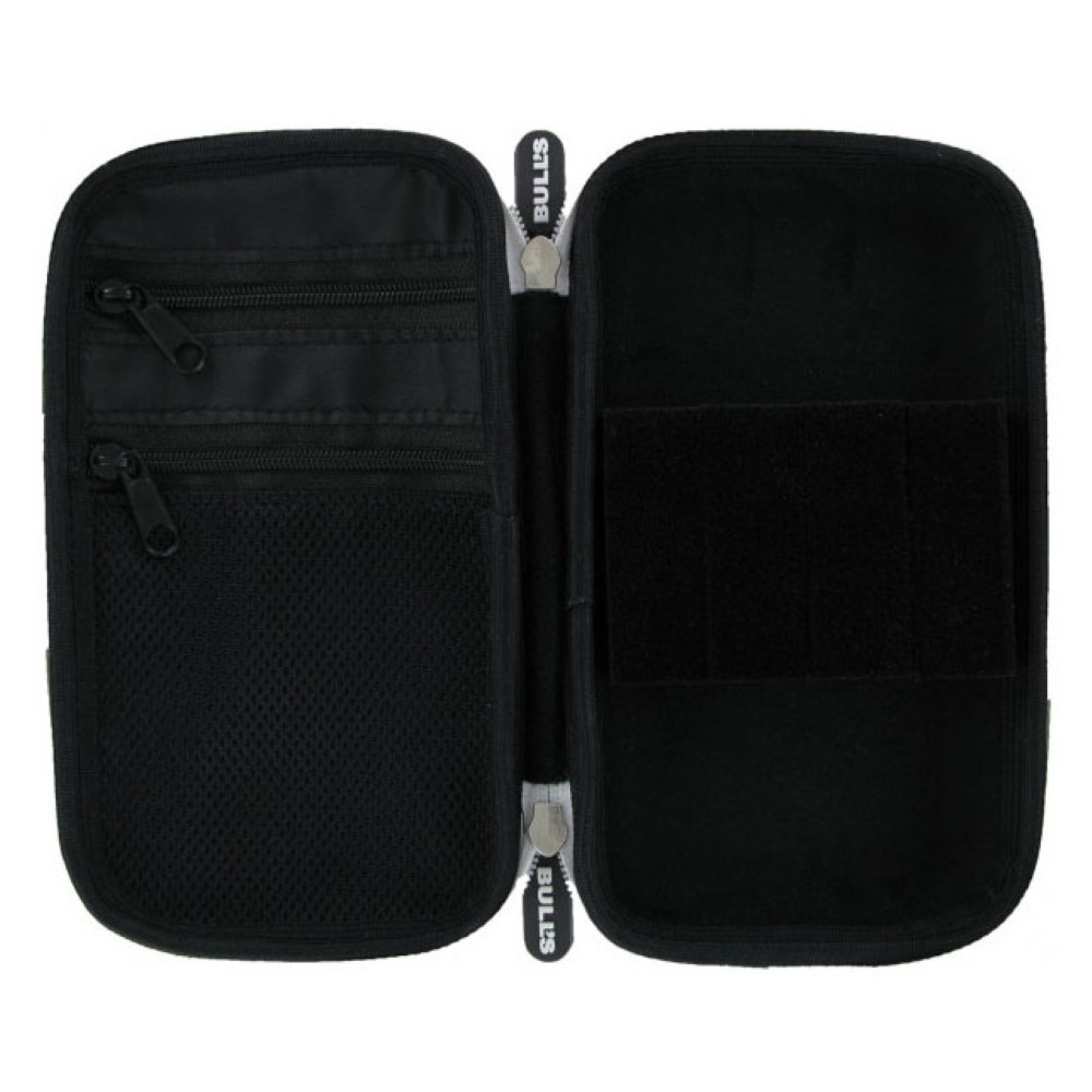 Funda de dardos Evada S color Roja, funda fabricada por Bull con acabados de gran calidad, doble cremallera y con capacidad para un juego de dardos montada, dispone de dos bolsillos para repuestos.
