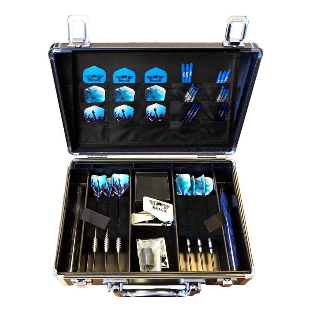 La funda Bulls Secuda Dart Case ofrece espacio para todos sus accesorios de dardos y dardos. Fabricada en aluminio con resistentes cierres para mantener a salvo todos tus dardos. Este estuche puede recibir golpes y es fácil de transportar gracias al asa en la parte superior.