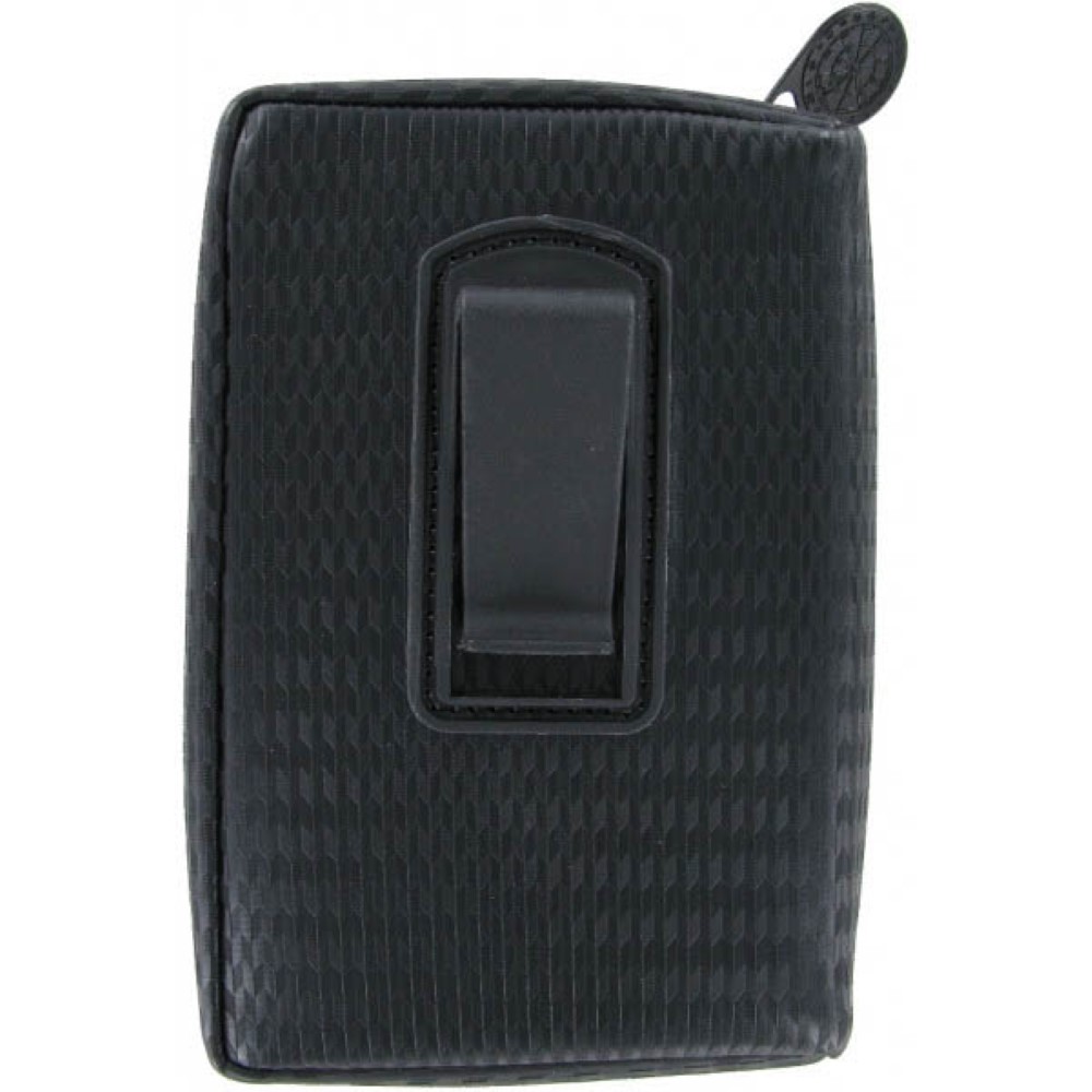 Dispone en la trasera pieza de plastico para fijar al cinturon o similar.