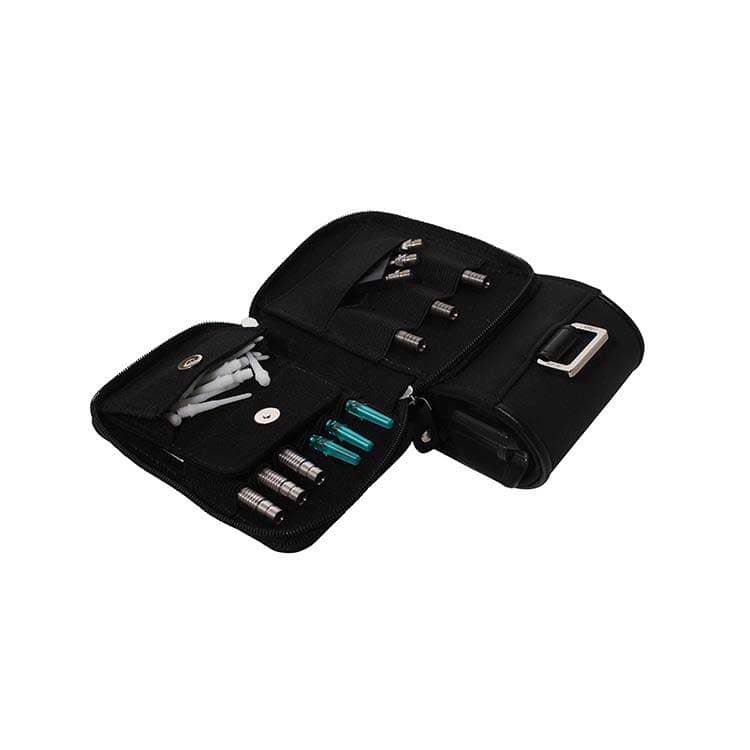 Dispone de bolsillo trasero con capacidad para 3 barriles y repuestos de dardos.