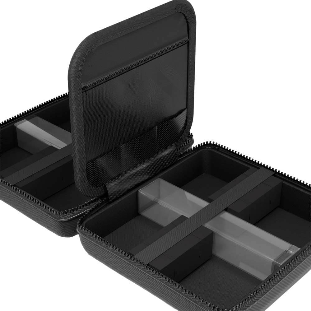 DESCRIPCIÓN:El estuche para dardos Casemaster Ventura Pro es perfecto para una noche de dardos. Tiene capacidad para cuatro juegos completos de dardos, un total de 12, sin dañar las plumas. Incluye dos tubos cuadrados diseñados para guardar plumas moldeadas, así como combinaciones de plumas y cañas que necesitan espacio adicional sin aplastarse. Su carcasa rígida mantiene su forma para resistir impactos y es resistente a la humedad. Su bolsillo con cremallera y sus seis ranuras para plumas te permiten guardar tus accesorios de dardos y objetos personales con facilidad. El resistente acabado en fibra de carbono le da al estuche Ventura Pro un aspecto único, con un discreto logotipo que realza su diseño llamativo. Dardos y accesorios se venden por separado.