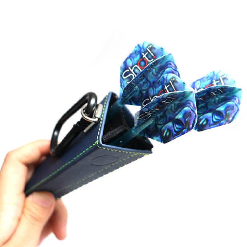 Funda de la marca Shot, funda con capacidad para 3 dardos completos y repuestos.