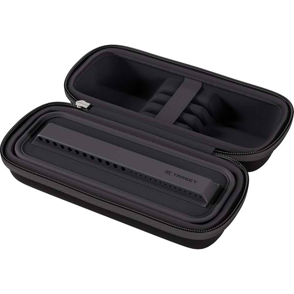 La dardera BOA está forrada con un material suave al tacto, seleccionado por su resistencia a los arañazos, que mantiene los barriles y las puntas en perfecto estado. Su carcasa exterior rígida y su diseño con cierre de cremallera ofrecen una protección segura durante el transporte, ya sea para asistir a torneos o a una noche de liga.