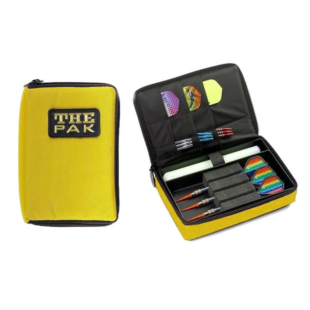 DESCRIPCIÓN:El nº1 en ventas!!, Las Fundas The Pak son una Autentica Maravilla donde Puedes Guardar 2 Juegos Completos de Dardos y una Infinidad de Repuestos, y Además lleva Un Bote Porta Puntas!!, Tira De Velclo para Colgarla en el Cinturón, Disponible en Varios Colores y Texturas, Cierre por Cremallera, No lo pienses más y Añádeme al Carro, Esta Dardera no te decepcionará.