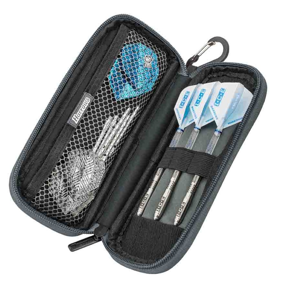Funda para transportar tus dardos de la marca Harrows Darts, funda muy practica ya que puedes llevar tus dardos montados y tiene bolsillo de rejilla para llevas repuestos de cañas, plumas o puntas.