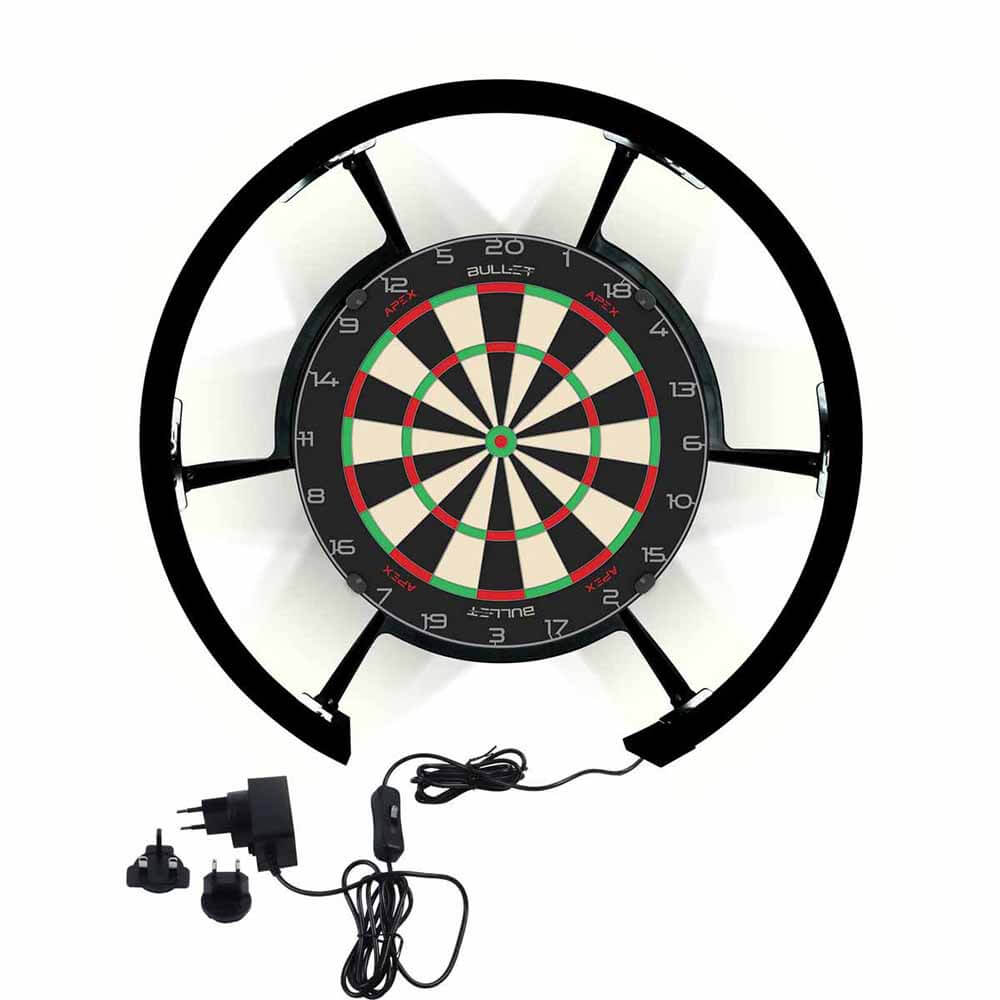 La iluminación para dianas Bullet incluye el sistema de iluminacion no incluye dardos ni accesorios