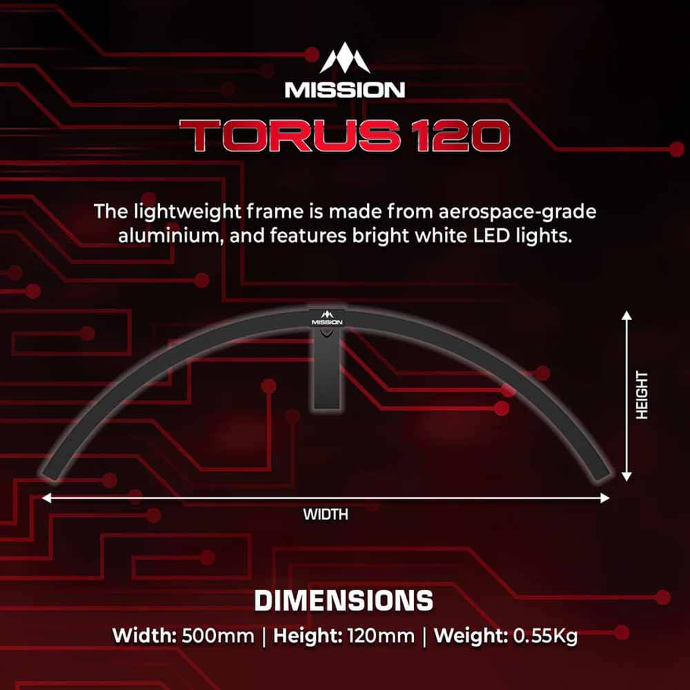 El Torus 120 ha sido diseñado para ofrecer a los jugadores una forma fácil y eficaz de iluminar su diana. El Torus 120 es una solución ligera y portátil, ya que se pliega fácilmente para caber en tu equipaje, ideal para cuando juegas a los dardos durante tus viajes, o incluso para guardarlo en casa cuando no lo uses. La luz con marco de 120 grados cuenta con LED blancos brillantes que proporcionan una iluminación perfecta de la diana, además de facilitar el acceso a los dardos después de cada lanzamiento. Este sistema de iluminación es rápido y fácil de montar y se puede acoplar a la parte superior de cualquier diana de dardos de punta de acero sin necesidad de tornillos. El Torus 120 tiene un conector USB-C (no incluye adaptador pero es valido cualquier transformador con conexion usb que tengamos de un telefono o tablet).