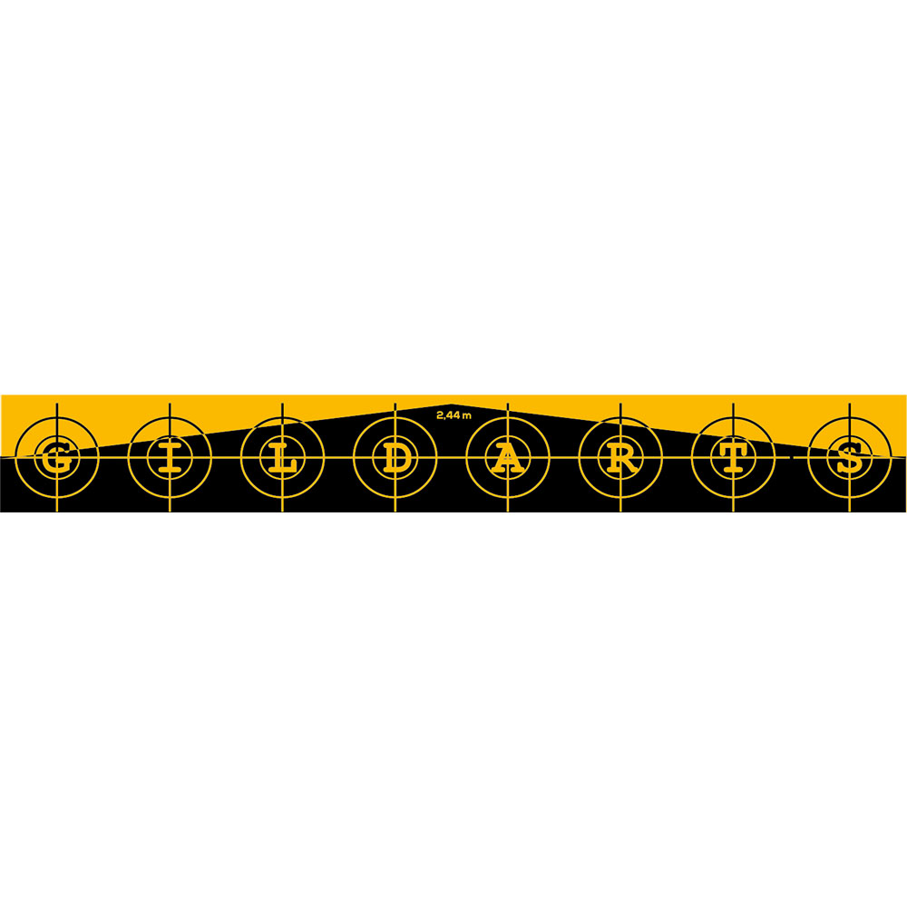 DESCRIPCIÓN:Lineal de tiro para dardos de gama económica con base de color amarillo y diseño GilDarts Threw.