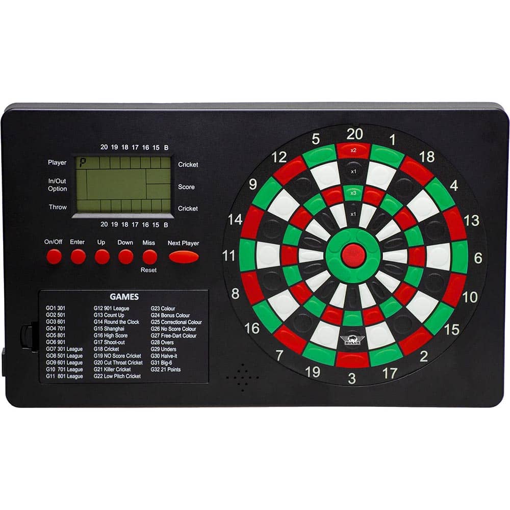 El Bulls Touch Scorer tiene más de 600 opciones y 32 juegos. Y con un máximo de 8 jugadores, puedes divertirte mucho con tus amigos. ¡Debido a sus numerosas funciones y facilidad de uso, Bulls Touch Scorer es una excelente adición a cualquier configuración de diana de dardos!