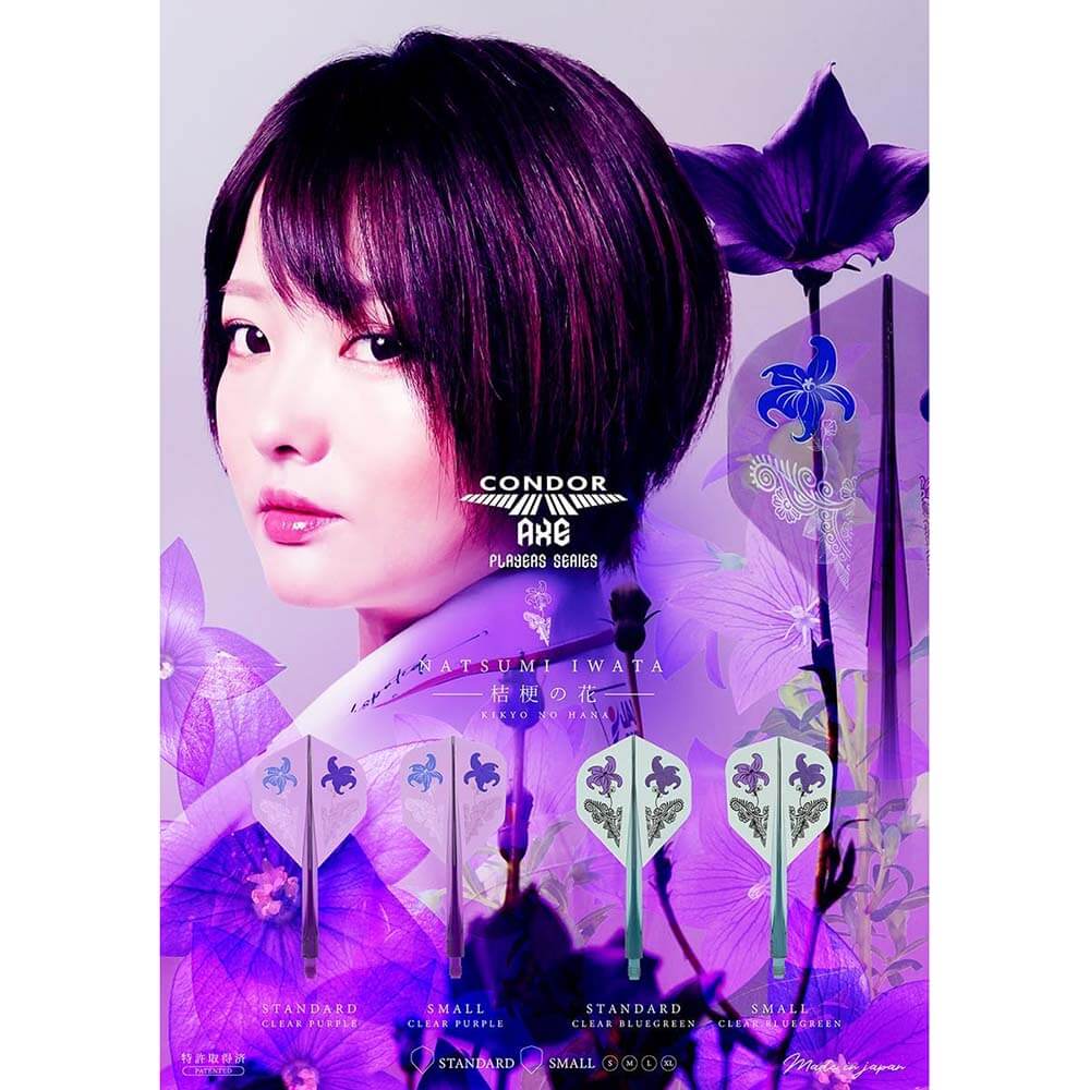 DESCRIPCIÓN:Plumas para dardos de la marca Condor, serie Axe, modelo Balloon Flower, diseñada por la jugadora Iwaka Iwaka
