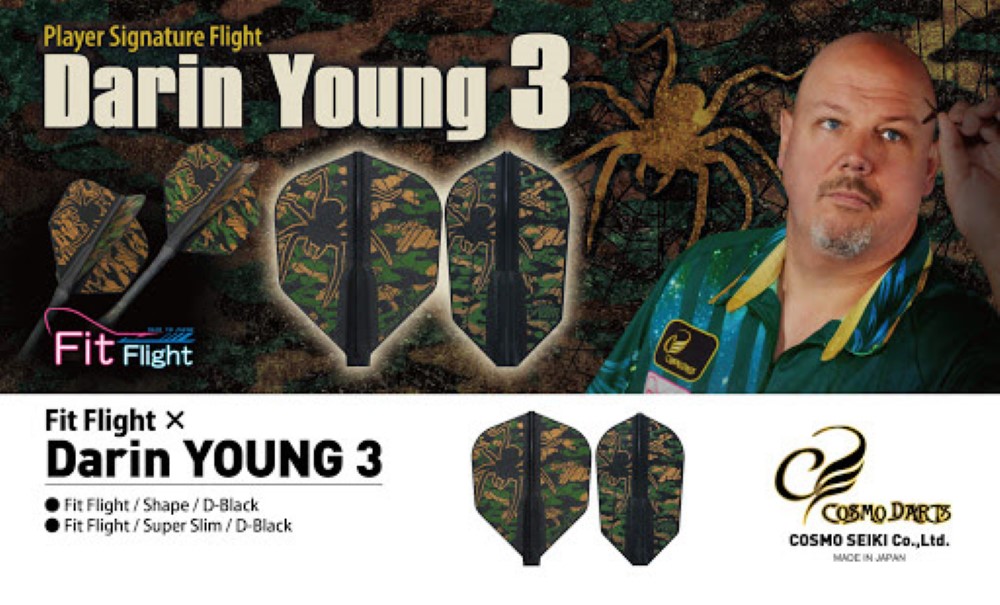 Plumas para dardos fit flights en forma slim diseño del jugador Darin Young 3