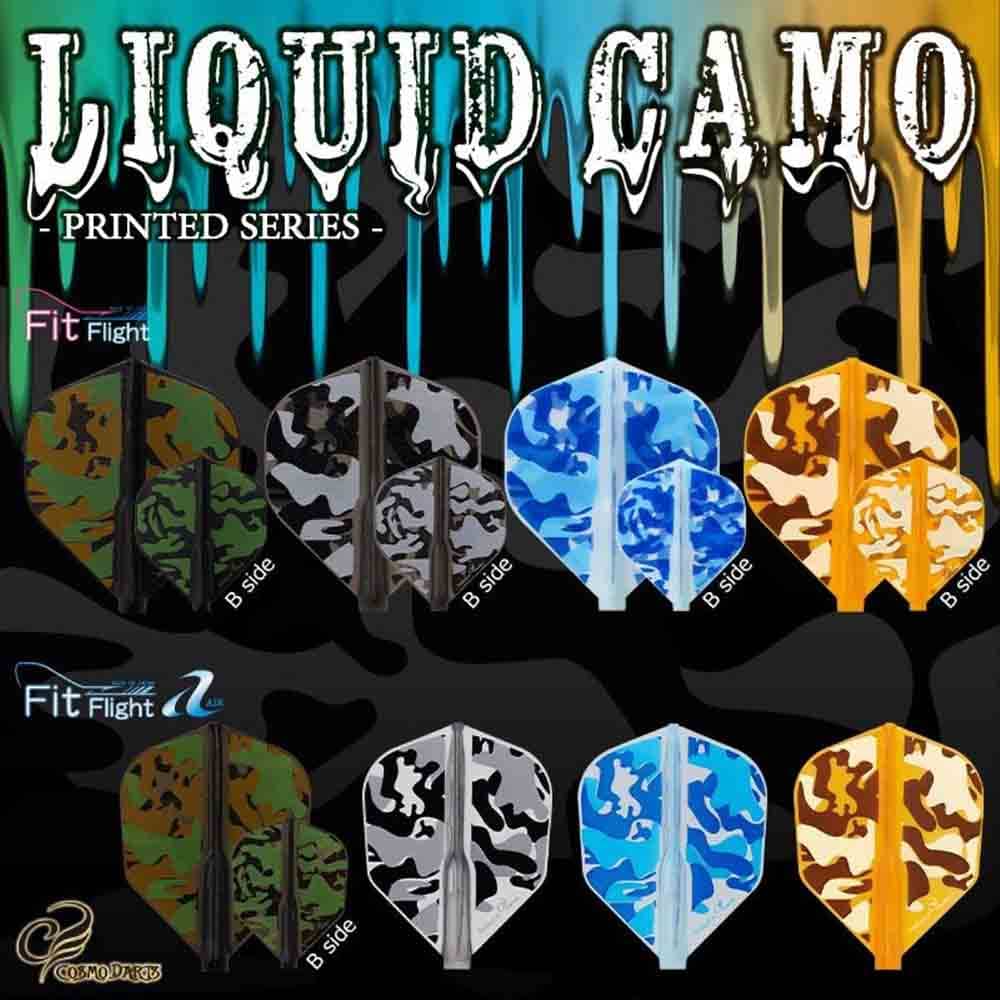 El producto se compone por 1 set de 3 plumas Cosmo Darts Modelo Series Liquid Camo