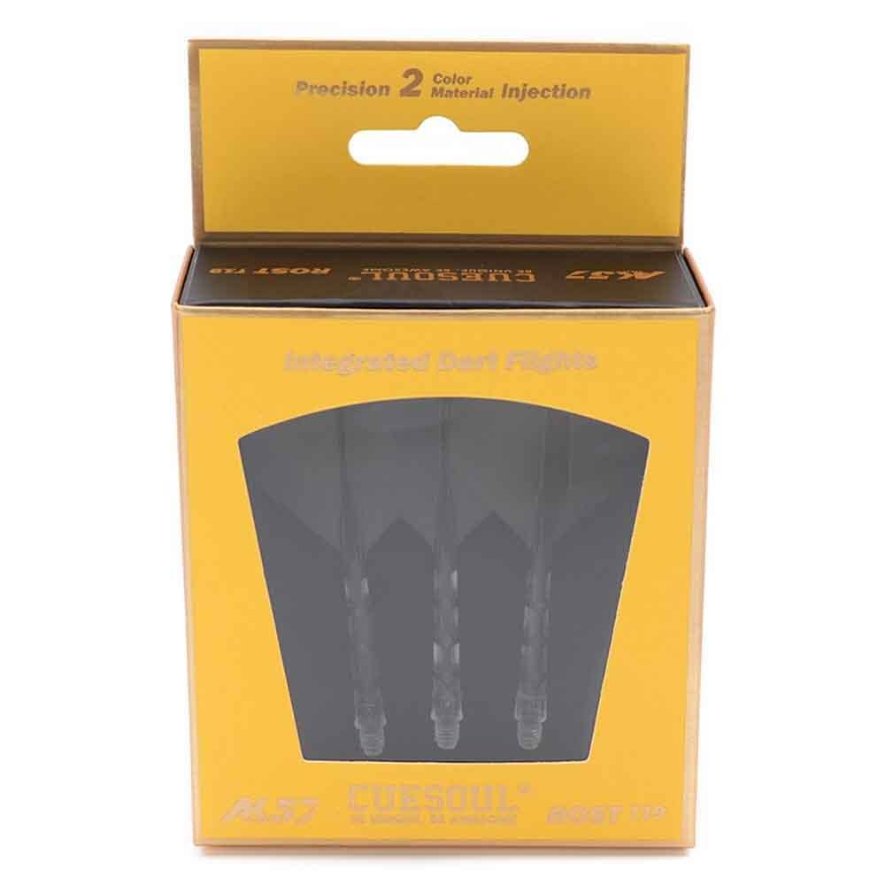 Con el sistema Cuesoul Rost T19 han combinado dos productos diferentes (caña del dardo AK7 y pluma del dardo AK5), las roscas del eje y el eje del dardo se endurecen, es menos probable que las roscas se deformen, es menos probable que los dientes de la rosca se dañen cuando se conectan al cuerpo del dardo y el vuelo El material conserva la flexibilidad ,y la línea de borde reforzada es resistente al desgarro.