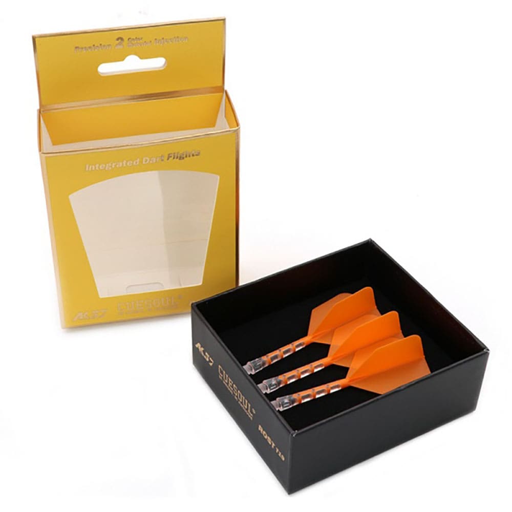 Con el sistema Cuesoul Rost T19 han combinado dos productos diferentes (caña del dardo AK7 y pluma del dardo AK5), las roscas del eje y el eje del dardo se endurecen, es menos probable que las roscas se deformen, es menos probable que los dientes de la rosca se dañen cuando se conectan al cuerpo del dardo y el vuelo El material conserva la flexibilidad ,y la línea de borde reforzada es resistente al desgarro.