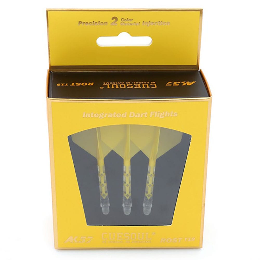 Con el sistema Cuesoul Rost T19 han combinado dos productos diferentes (caña del dardo AK7 y pluma del dardo AK5), las roscas del eje y el eje del dardo se endurecen, es menos probable que las roscas se deformen, es menos probable que los dientes de la rosca se dañen cuando se conectan al cuerpo del dardo y el vuelo El material conserva la flexibilidad ,y la línea de borde reforzada es resistente al desgarro.