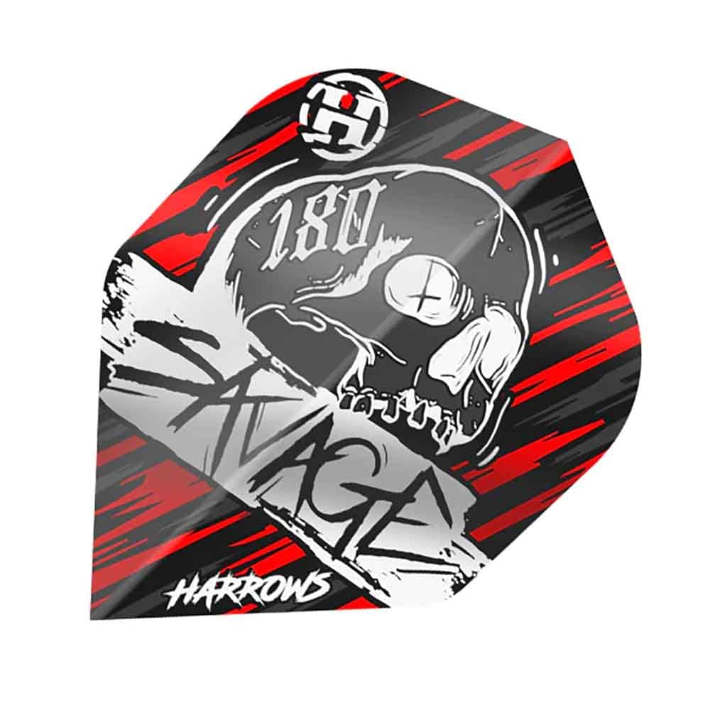 Plumas fabricada por la marca Harrows Darts y diseñadasbajo el modelo Savage, plumas con formato nº2 y 100 micras de grosor.