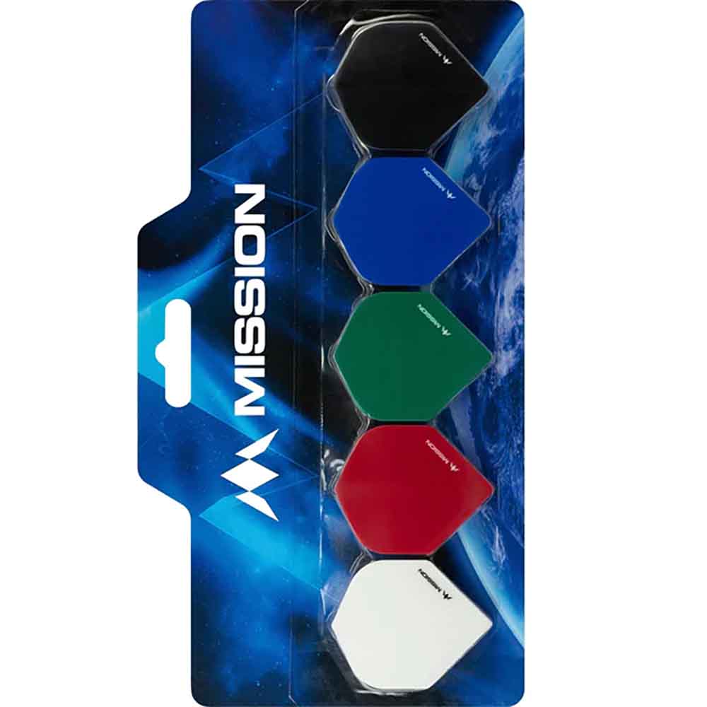 DESCRIPCIÓN:El Paquete de Selección de Vuelos de Misión contiene 5 plumas de Misión, incluye 1 set de 3 blanco, 1 set de 3 rojo, 1 set de 3 verde, 1 set de 3 azul y 1 set de 3 negro. Los vuelos están construidos con un material resistente de 100 micras, lo que garantiza durabilidad y un rendimiento altamente consistente. El proceso de producción de los vuelos de la Misión proporciona a los vuelos un llamativo acabado visual. Colección Mission Logo Dart Flight. Una colección de 5 juegos de plumas Logo Dart. NB.