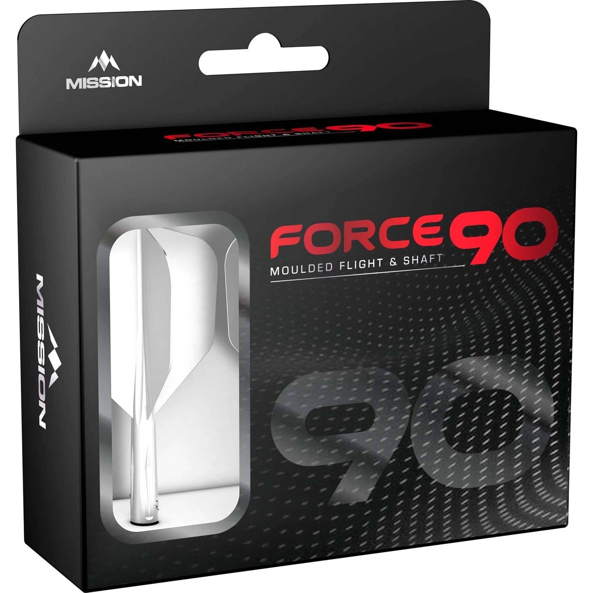 Pluma fabricada por la marca de dardos Mission modelo Force 90 No6 Blanca, pluma fabricada en una pieza caña + pluma para ofrecer al jugador de dardos una experiencia diferencia de jugar a los dardos de gran calidad.