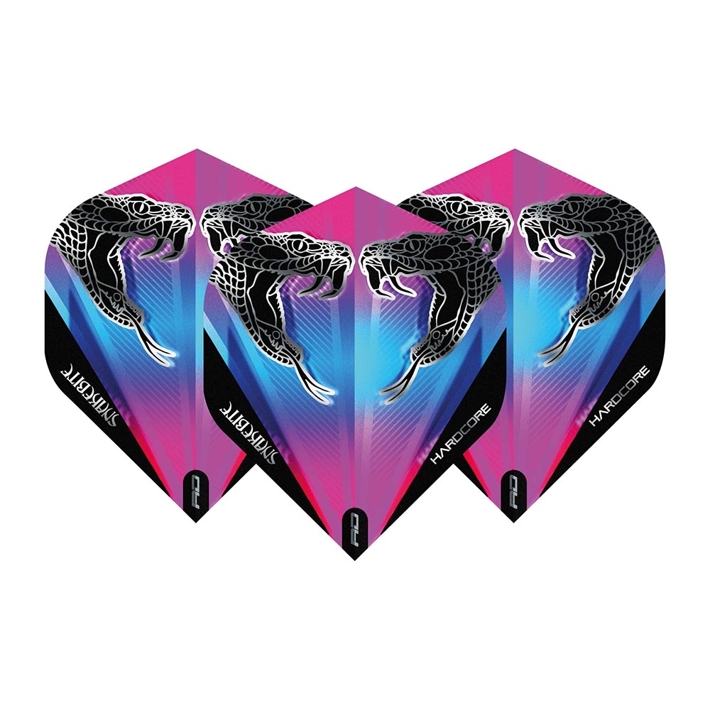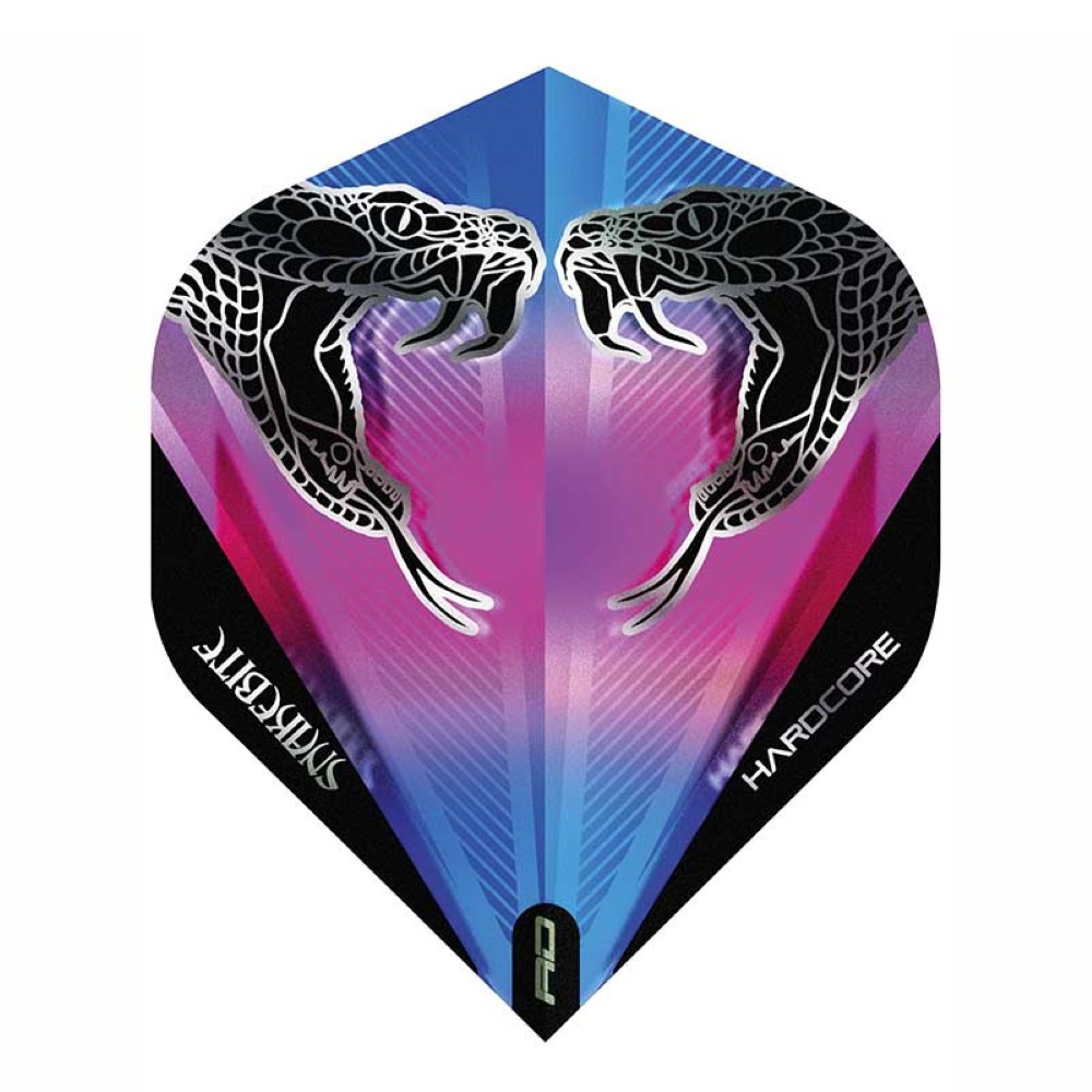 Cada unidad añadida al carrito se compone por 1 set, 3 plumas Rosa y Azul Snakebite Standard de la marca de dardos Reddragon
