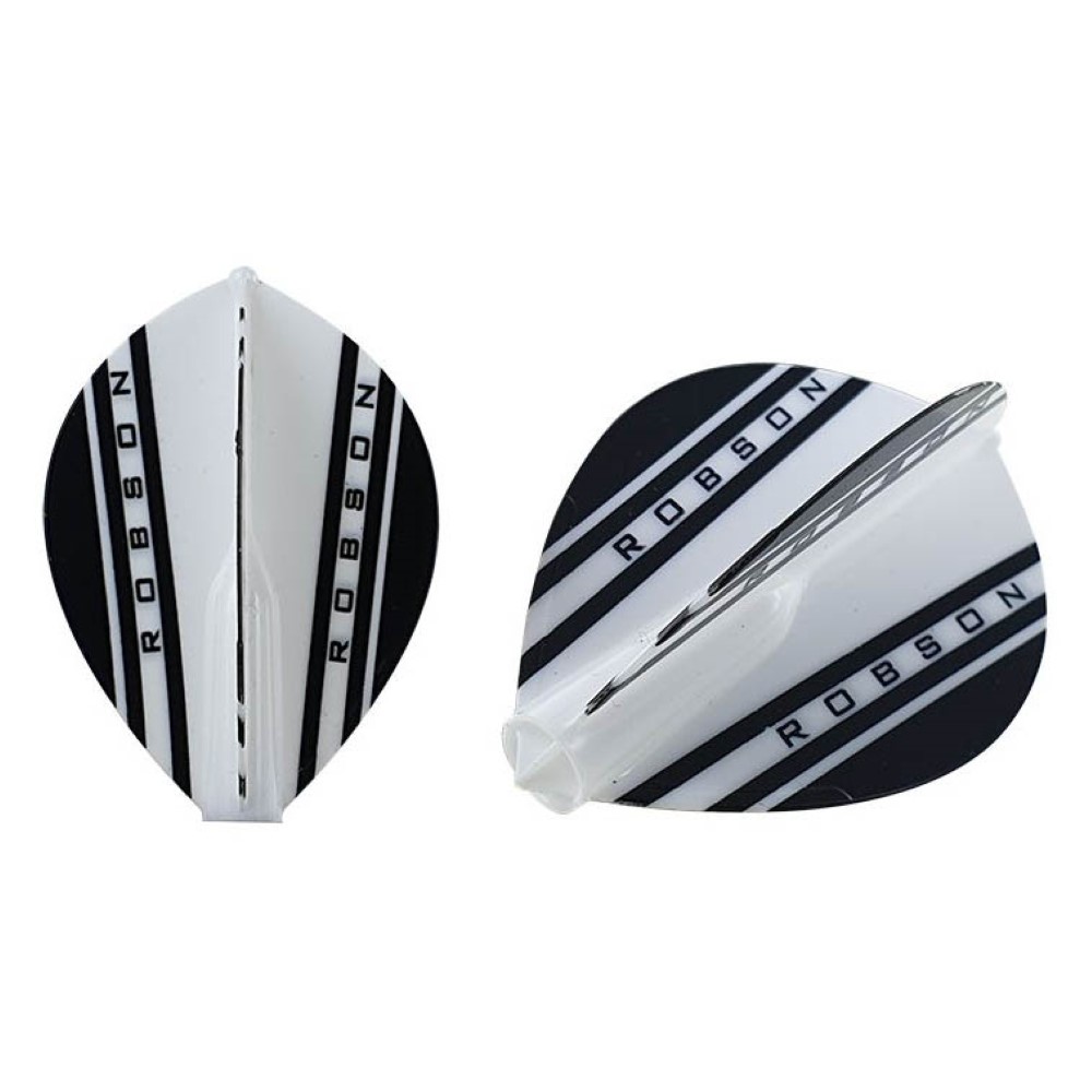 Pluma que por su diseño y materiales siempre están perfectas a un angulo de 90º, para siempre ir a donde el jugador lance el dardos, evitando desplazamiento por problemas de no estar bien alineadas, las plumas Robson no se puede plegar como los modelos normales pero merece la pena por que siempre estará perfecta y es una pluma de dardos muy duradera.