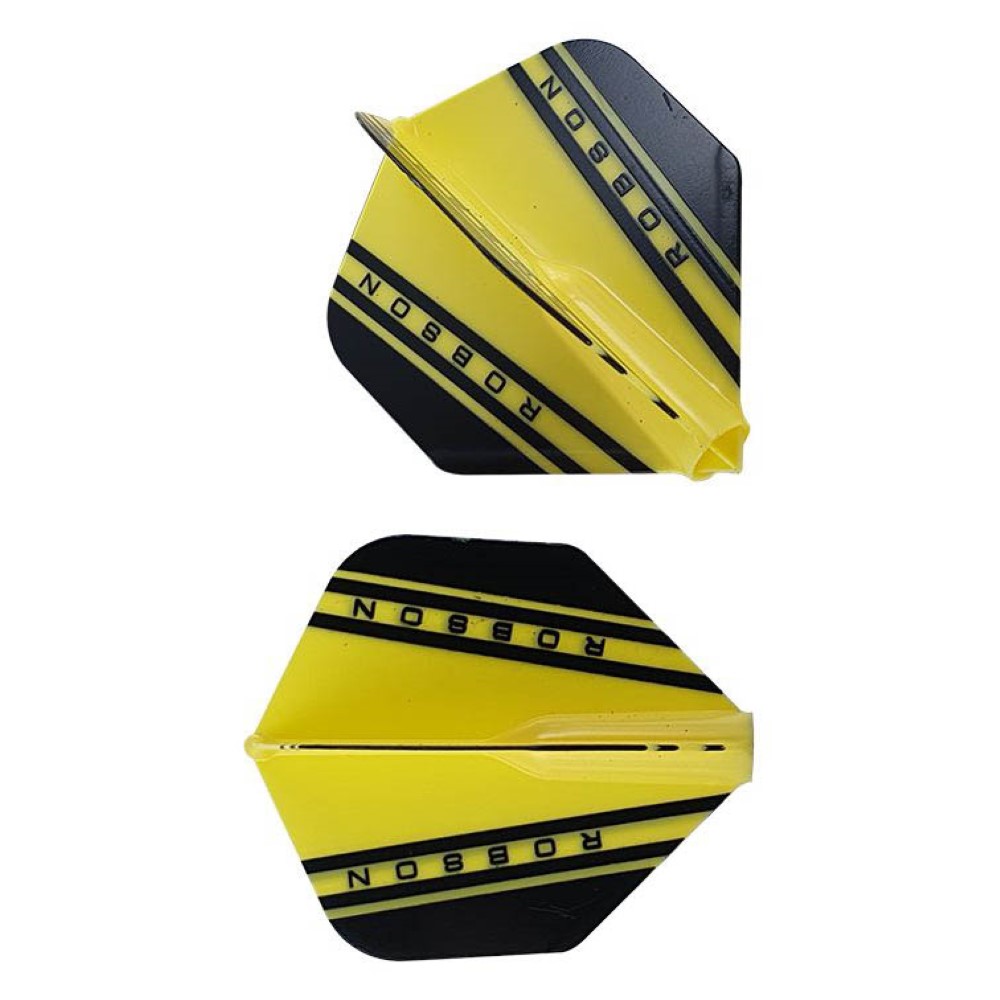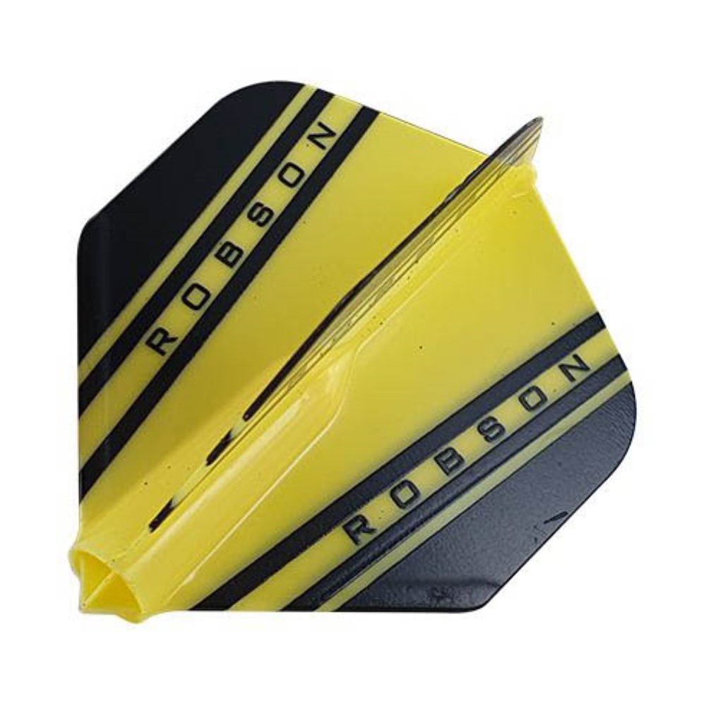 Pluma que por su diseño y materiales siempre están perfectas a un angulo de 90º, para siempre ir a donde el jugador lance el dardos, evitando desplazamiento por problemas de no estar bien alineadas, las plumas Robson no se puede plegar como los modelos normales pero merece la pena por que siempre estará perfecta y es una pluma de dardos muy duradera.