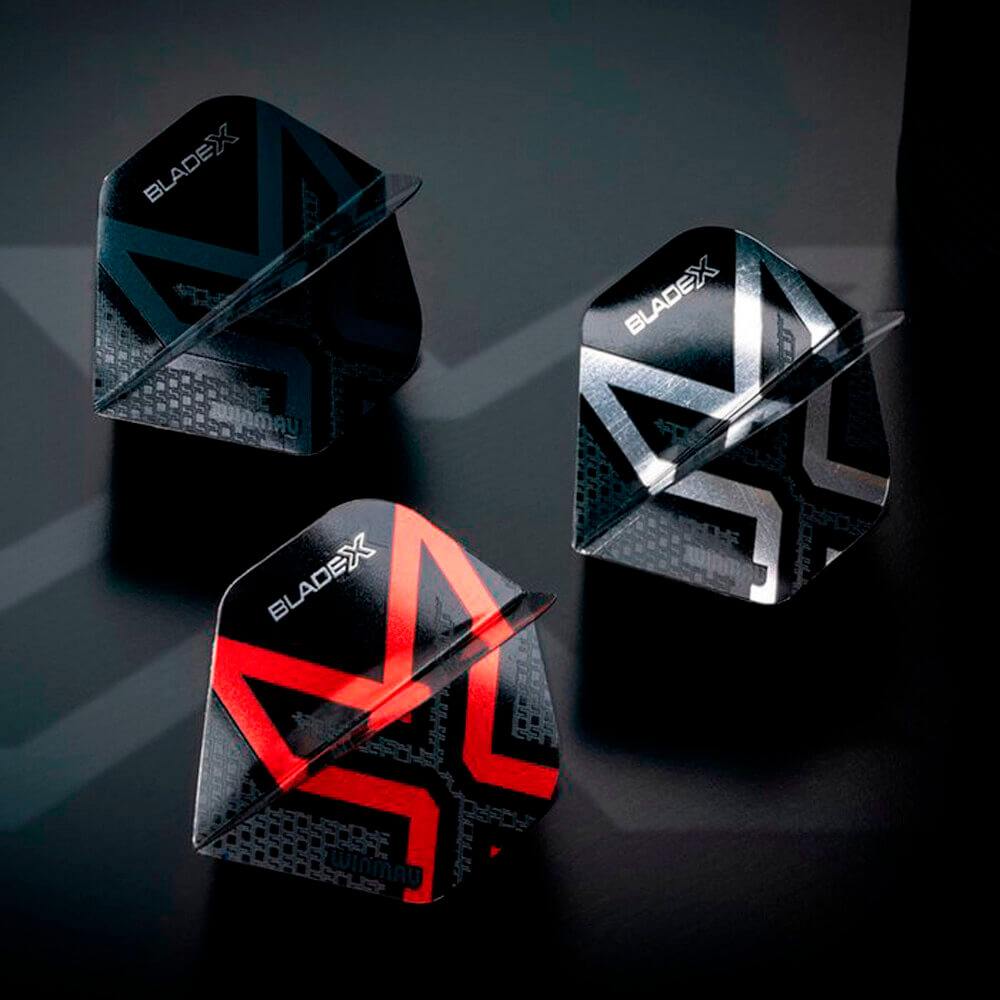 Pluma fabrica por Winmau Darts modelo Blade X pluma fabricada con material sólido de perfil bajo con superficie de agarre táctil.