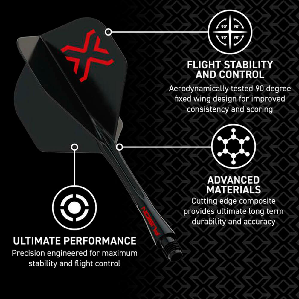 El producto se compone por 1 set de 3 plumas de dardos Winmau Fusion Blade X