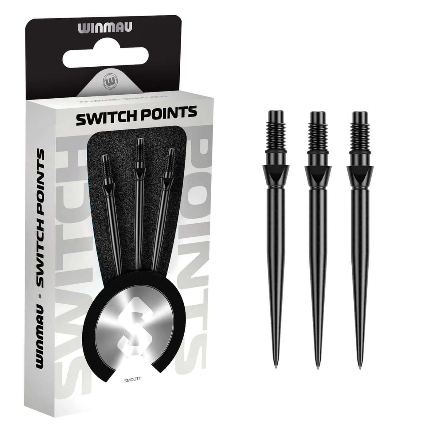 DESCRIPCIÓN:Puntas para dardos con punta de acero fabricadas por Winmau Darts, modelo Switch Point Groove con efecto negro.