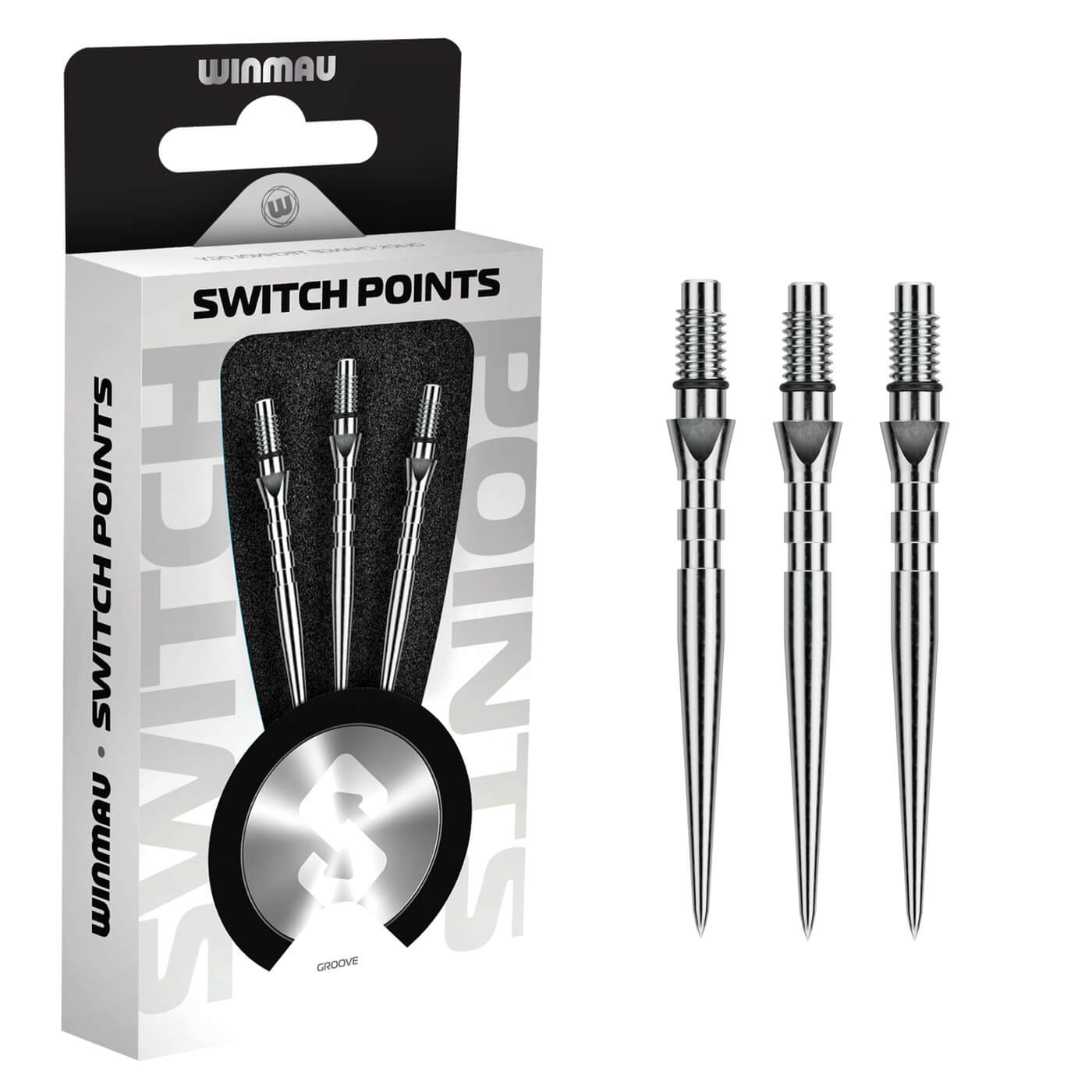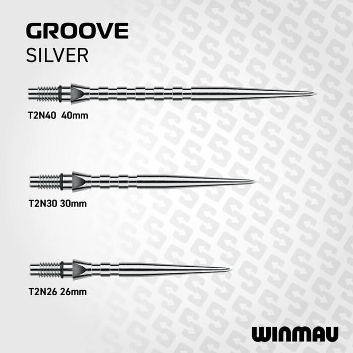 DESCRIPCIÓN:Puntas para dardos con punta de acero fabricadas por Winmau Darts, modelo Switch Point Groove con efecto plata.