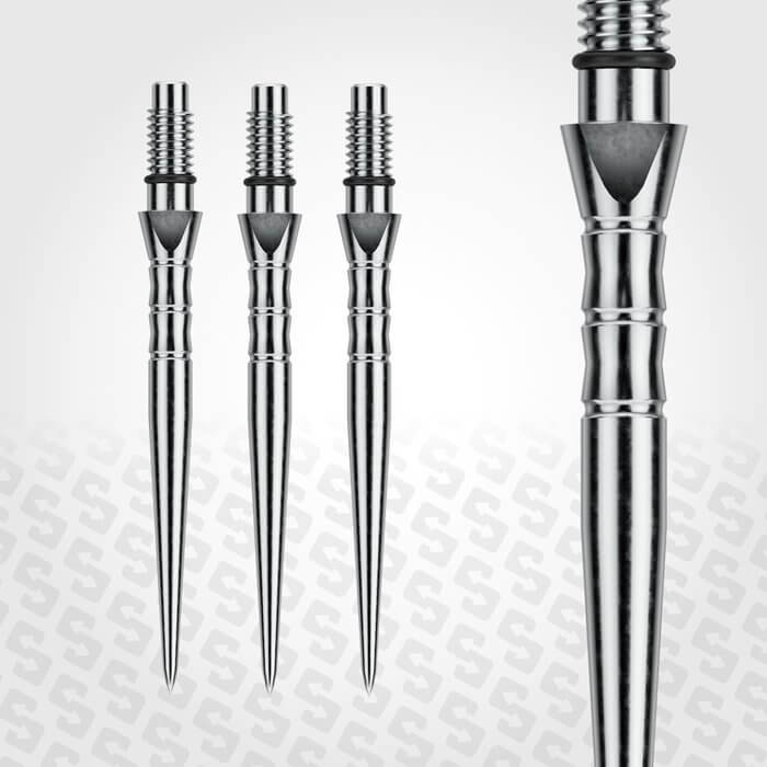 DESCRIPCIÓN:Puntas para dardos con punta de acero fabricadas por Winmau Darts, modelo Switch Point Wave con efecto plateado.