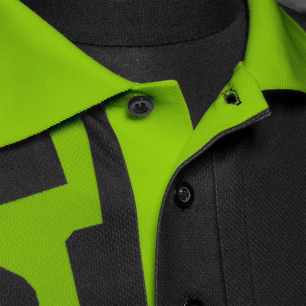 Estas llamativas camisas cuentan con cuellos en contraste de color, con 3 botones de apertura para mayor comodidad y un bolsillo delantero reforzado y bordado. Confeccionada con tejido de microfibra de alta tecnología, que evacua el sudor dejando al jugador cómodo, tanto dentro como fuera del oche.