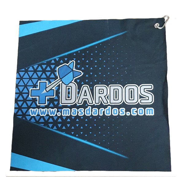 TOALLA Masdardos 2023. Toalla pequeña de gran absorción. Tamaño 35 x 35cm. Con mosquetón para llevarla colgada