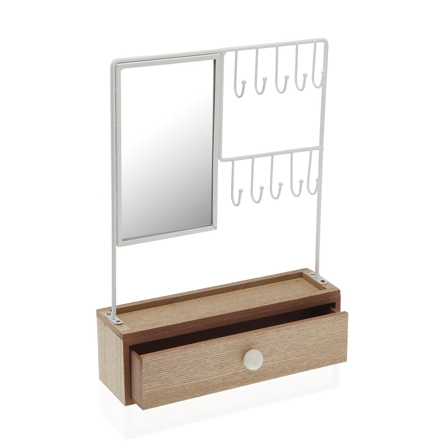 Original colgador de joyas con espejo, con 1 espejo, 10 ganchos para colgar y un cajón.