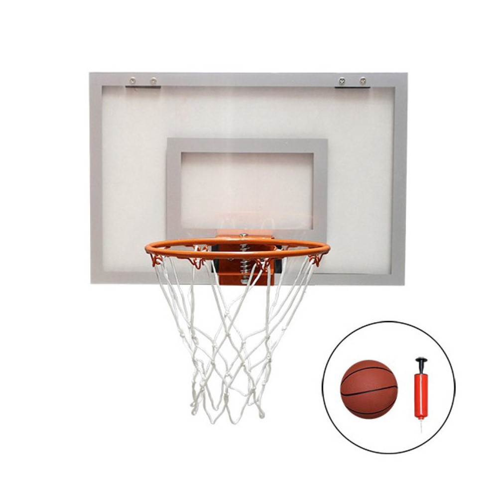 Aro basculante, incluye balón y bomba y red. Dimensiones de tablero: 45.5 x 31 cm. Diámetro aro: 22 cm.