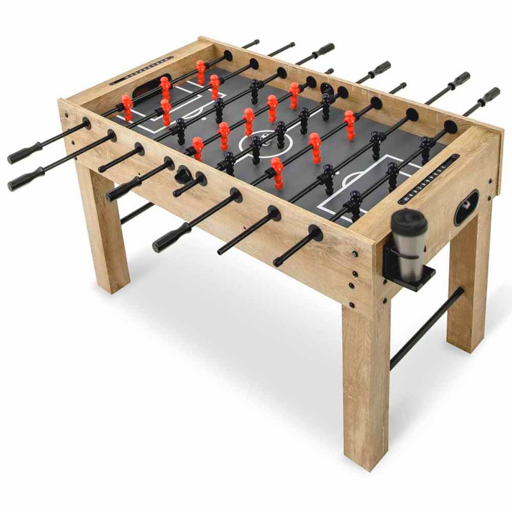 Incluye posavasos para , marcadores de goles y salida de bolas en cada lateral que hace del futbolin Maximus una elección muy segura de acertar ante un regalo o acontenticimiento.