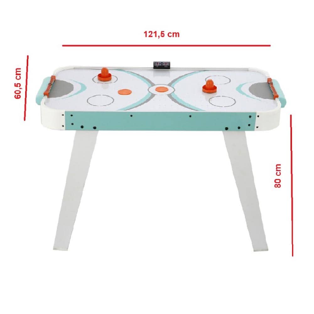 DESCRIPCIÓN:Mesa de juego air hockey con superficie deslizante con sistema de aire eléctrico de 220V. Incluye 2 lanzadores y 2 discos.