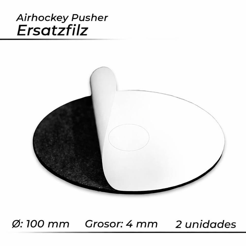 La parte inferior del empujador está equipada con un fieltro especial especialmente robusto de 3 mm de grosor para un mejor deslizamiento. Además, la base de fieltro protege la superficie de juego de la mesa de air hockey. Los empujadores Bandito HiPower para air hockey se suministran en un juego de dos, que incluye dos discos de fieltro de repuesto.