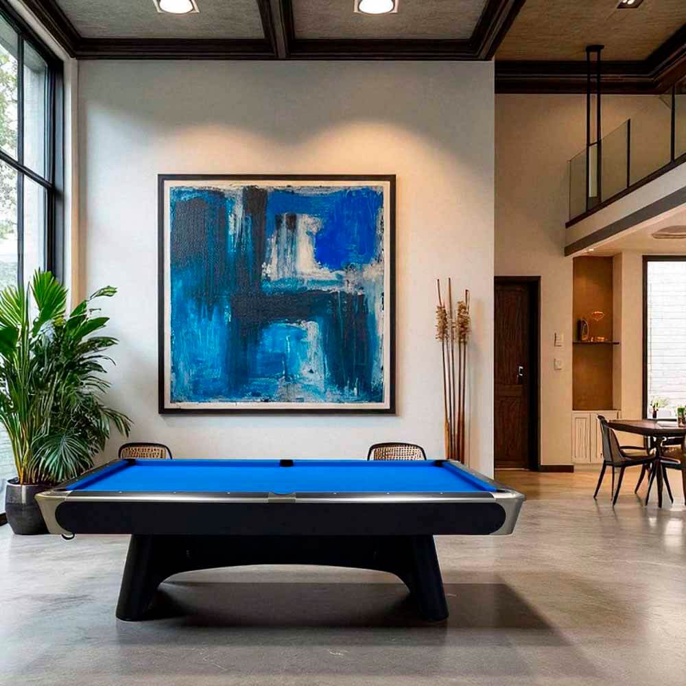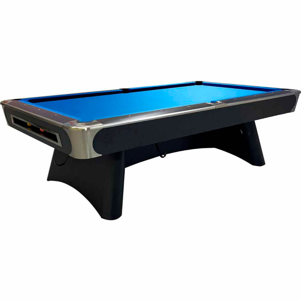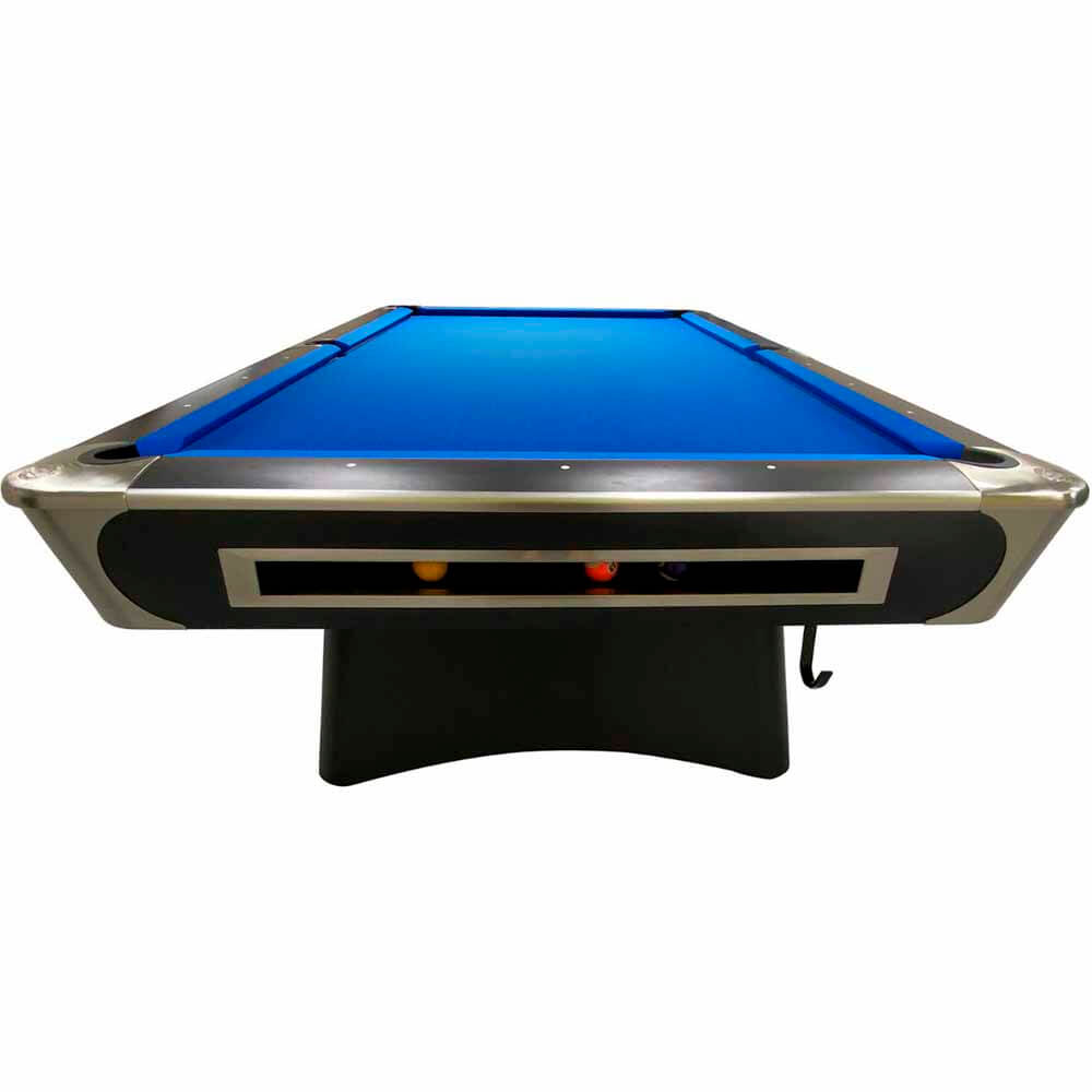 Pro está fabricada en negro mate con detalles en aluminio cepillado. El riel superior está fabricado en madera maciza de 45 mm con laminado negro mate y acabado en aluminio cepillado. Cuenta con cojines de goma K66 para una experiencia de juego excepcional. La mesa de billar Century Pro cuenta con una estructura sólida y resistente, y está equipada con un avanzado sistema de nivelación. La viga está hecha de contrachapado revestido de 39 mm y el faldón de MDF de 3 mm y contrachapado de 15 mm con laminado negro mate. El recogedor de bolas integrado está hecho de contrachapado laminado negro de 18 mm y tiene una estructura de metal cepillado. La mesa de billar está equipada con tres ganchos: dos para el taco de apoyo y uno para el triángulo.