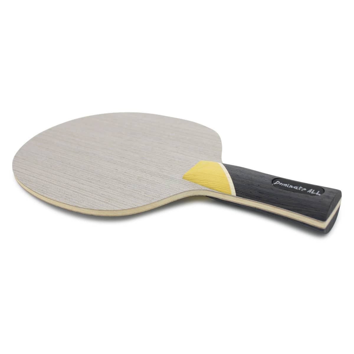 El Dominate All es un punto culminante en términos de diseño con su hoja de palo gris y su mango amarillo-negro. La madera se encuentra extraordinariamente bien en la mano. Esto se debe al mango compacto y redondo de la raqueta. La superficie de contacto para el pulgar se mantiene agradablemente pequeña, de modo que la madera se agarra en la mano. El centro de gravedad está aproximadamente 1 cm por encima del extremo de la escala del mango. Esto hace que el Dominate All esté perfectamente equilibrado.