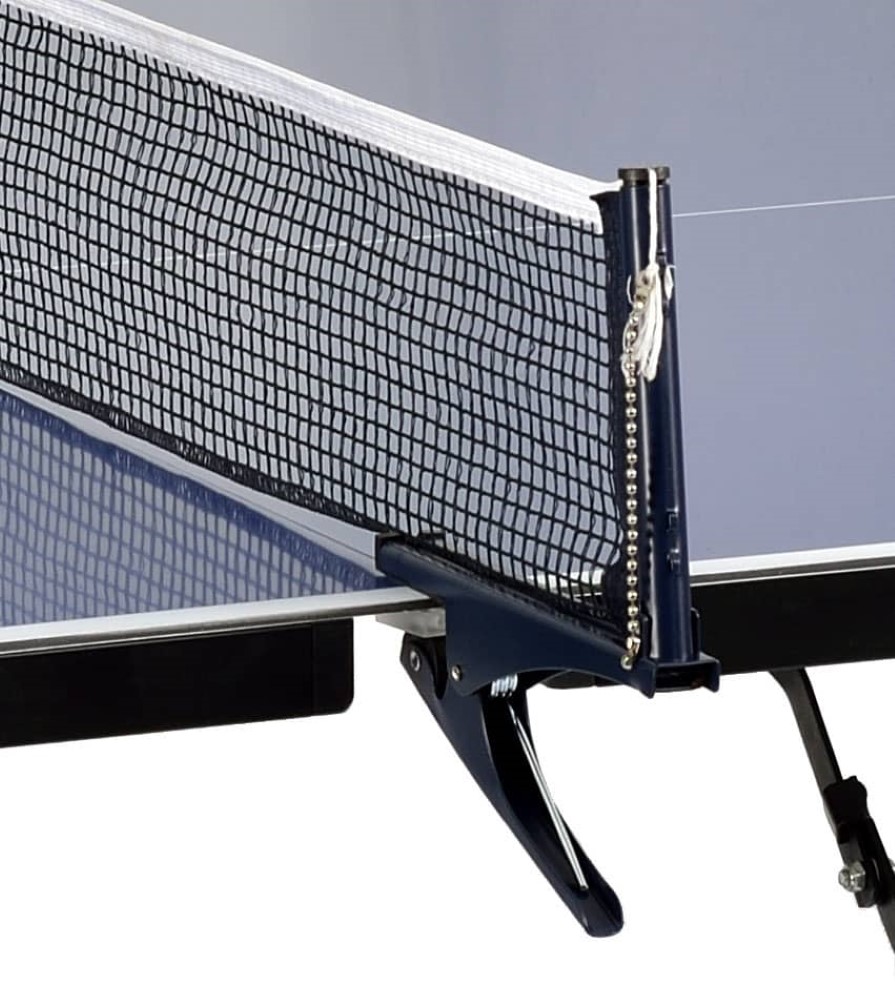 Lo práctico del modelo Big Fun es que la mesa se puede montar o desmontar en un minuto, ya que solo hay que desplegar las cuatro patas. El puntal de seguridad se engancha automáticamente y, junto con los puntales metálicos de 25 x 25 milímetros de espesor, garantiza la máxima estabilidad. En el reposapiés hay unos pequeños pies regulables con los que se puede ajustar la mesa de forma rápida y perfecta si el suelo es irregular. Gracias a esta sencilla construcción plegable, las dos partes del plato se pueden colocar en posición vertical (en posición vertical) después de jugar. La altura de la mesa de 76 centímetros y el conjunto de red estable, que están equipados con un práctico sistema de liberación rápida, corresponden a las dimensiones del torneo de la Asociación Alemana de Tenis de Mesa.